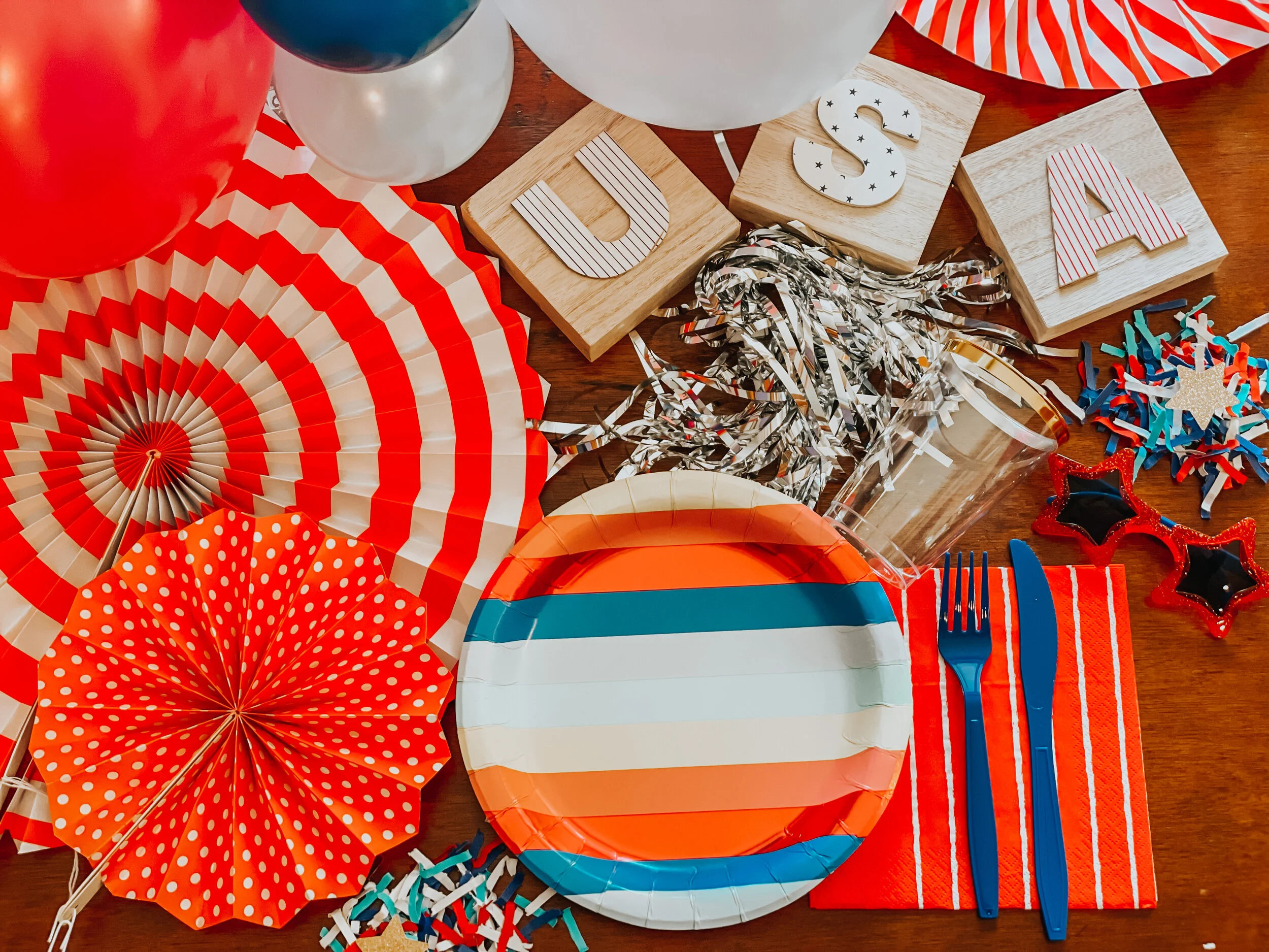 “Stars and Stripes” banner and silly straws – Ellie and Piper Co.