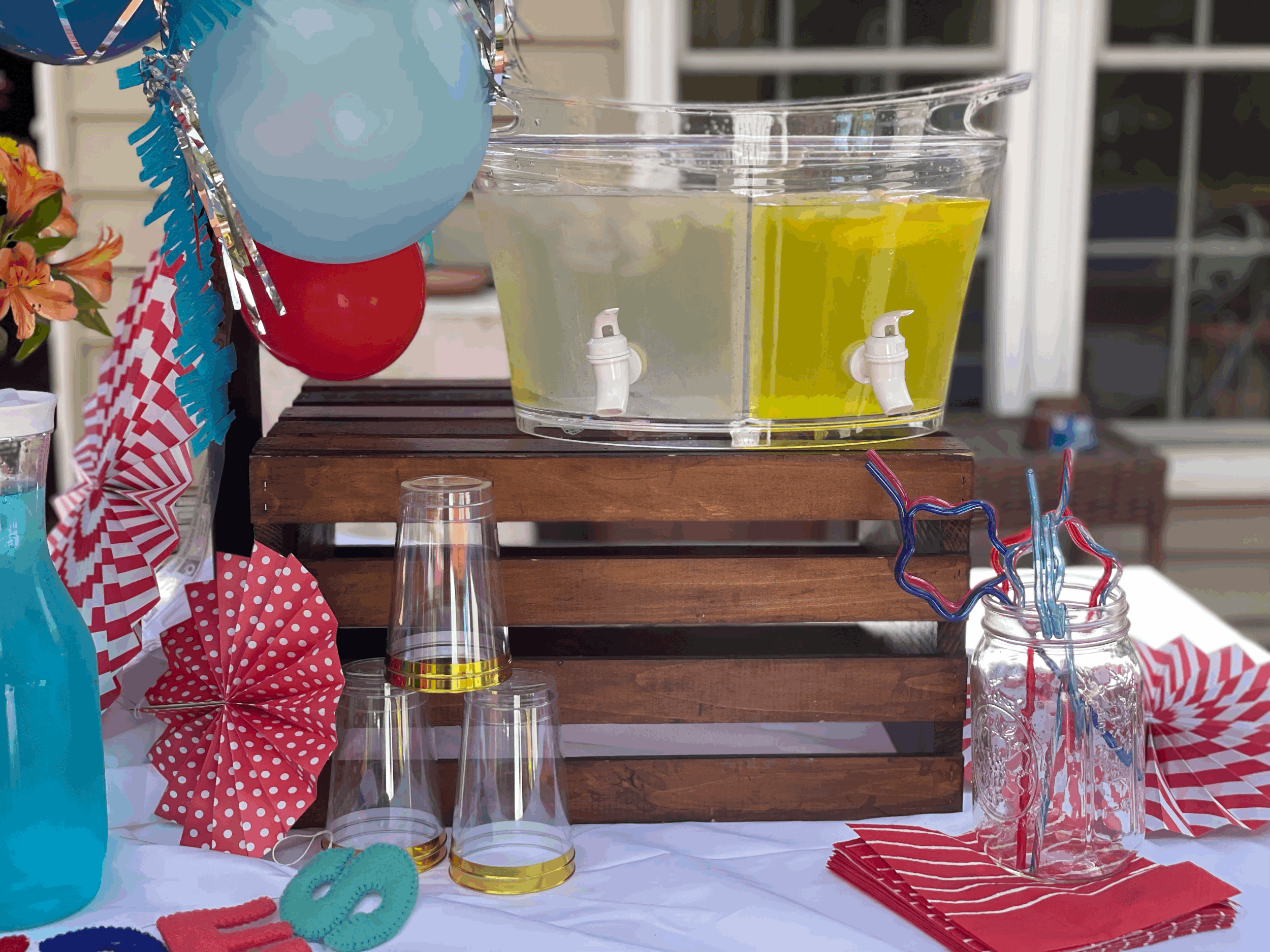 We typically begin our traditional 4th of July celebration around noon. Because we are full off a big breakfast, the actual cookout doesn’t begin until about 3pm. But a big beverage station is a staple at my house for almost any celebration, and especially the 4th of July.